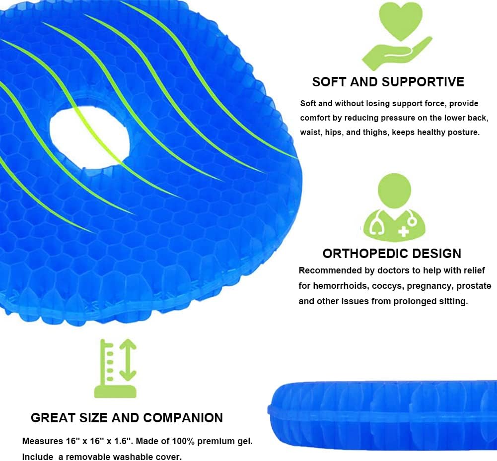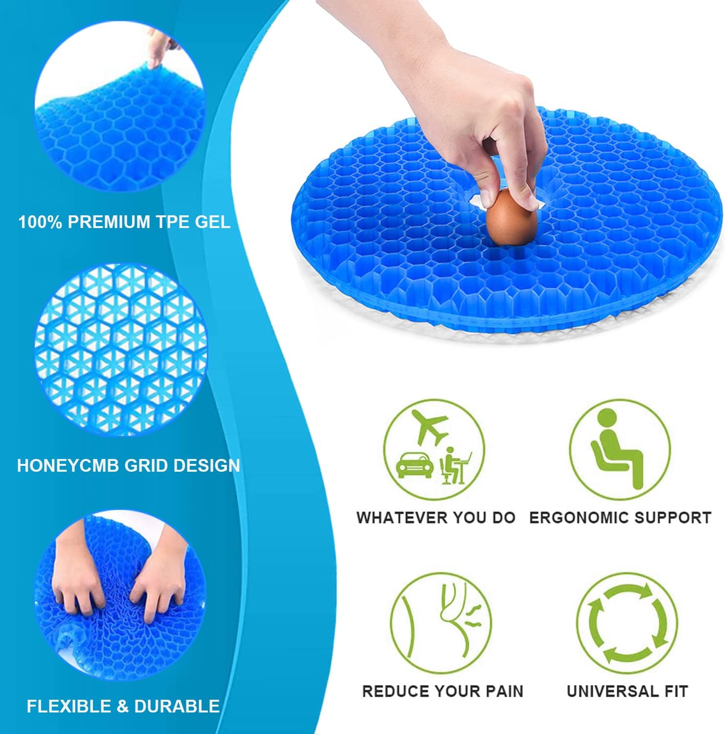 This 16-inch Round Gel Seat Cushion features an advanced honeycomb structure designed for pressure relief and ergonomic support. Crafted from flexible TPE gel material, it evenly distributes body weight to alleviate pain from prolonged sitting, making it ideal for those suffering from tailbone pain, hemorrhoids, sciatica, pregnancy discomfort, or post-operative recovery.