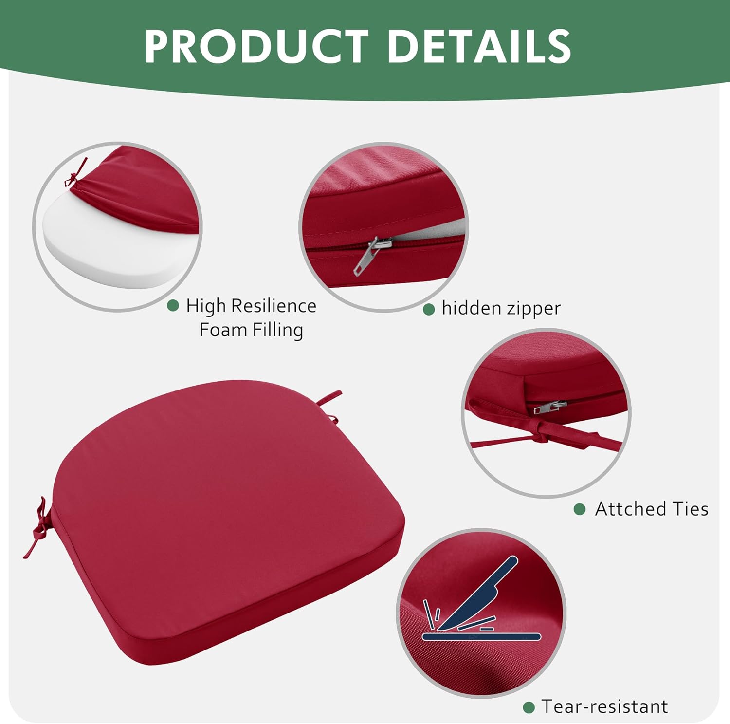 Available in three size options (17"x16", 18.5"x16", and 19"x19"), these cushions cater to a variety of chair sizes. Whether for dining chairs, office seats, or patio furniture, you can choose the size that fits best. Each cushion comes with durable tie-on straps that hold it securely in place, preventing any slipping.