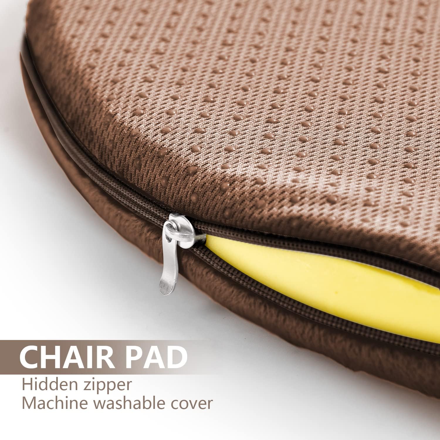 Round Memory Foam Seat Cushion – High-Density Foam Pad for Wooden Chairs, Stools, Dining or Office Seating (Brown)