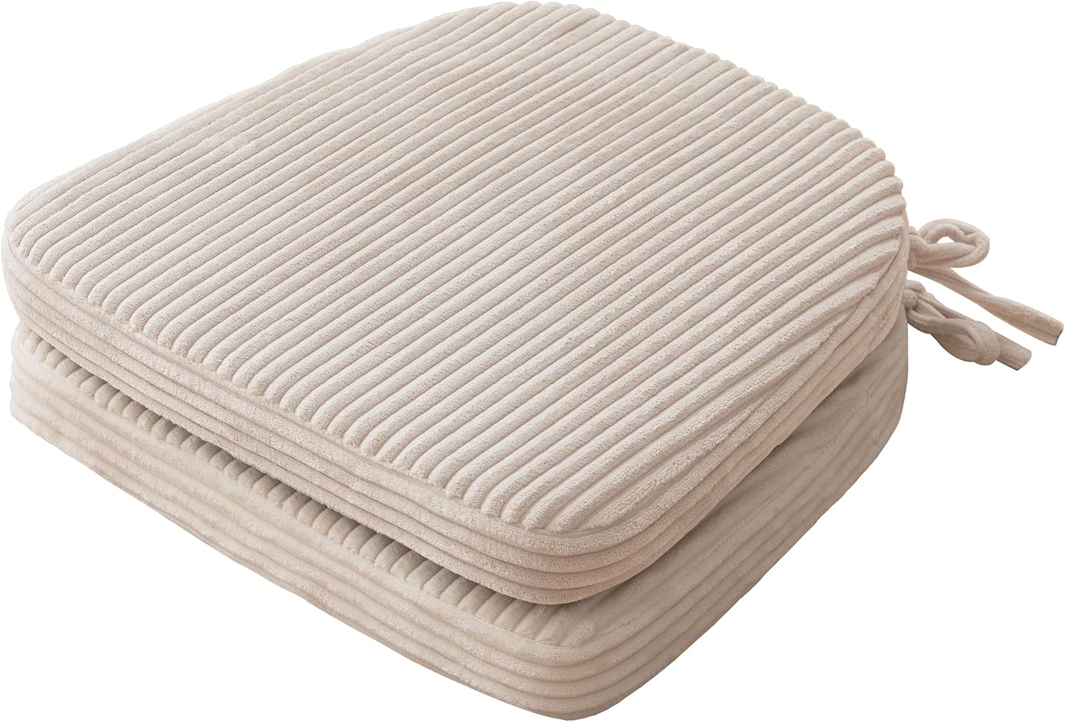 Upgrade your seating comfort and home aesthetic with this elegant Beige Striped Chair Cushion. Measuring 17 x 16 x 2.3 inches, it features a soft ribbed fabric cover and a resilient foam interior that provides gentle yet firm support. The cushion includes tie straps on each corner to secure it firmly to the chair, preventing any unwanted slipping. Whether in the dining room, office, bedroom, or patio, this cushion adds both comfort and style.
