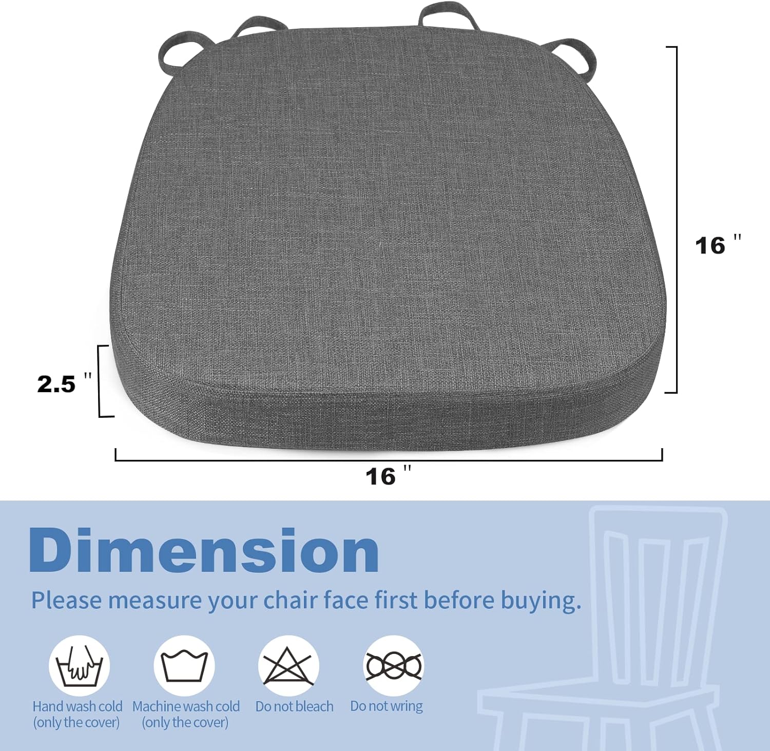 This square chair cushion measures 16 x 16 inches with a thickness of 2.5 inches, designed for superior comfort and ergonomic support across a variety of seating scenarios. The cushion comes with secure tie straps on all four corners, ensuring it stays in place on dining chairs, office chairs, patio furniture, folding seats, or indoor/outdoor chairs.